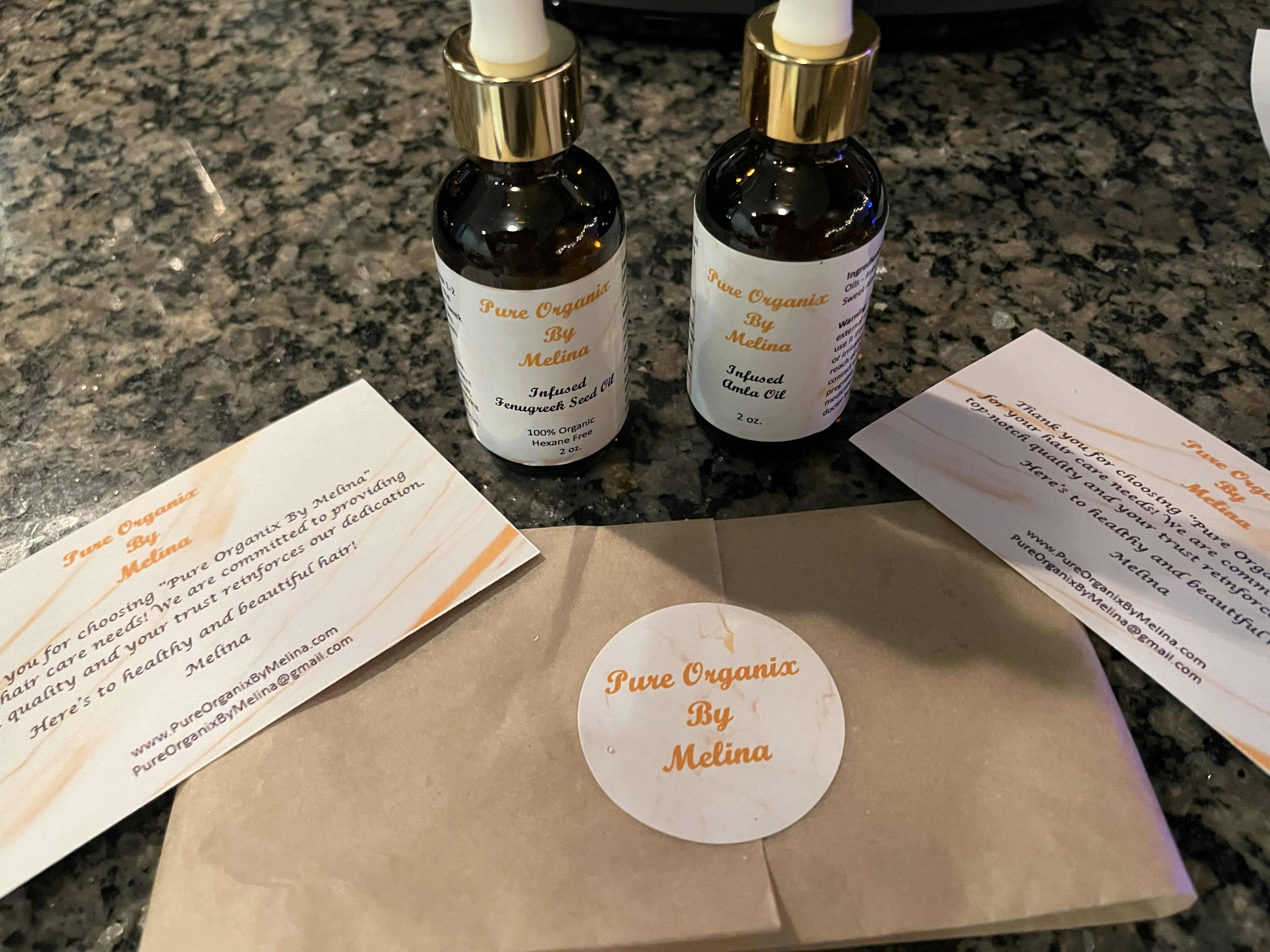 This infused Amla Oil by Pure Organix by Melina is pure, has no preservatives and is the best. It nourishes my scalp, prevents itching, facilitates growth and darkens my gray hair. I love it.